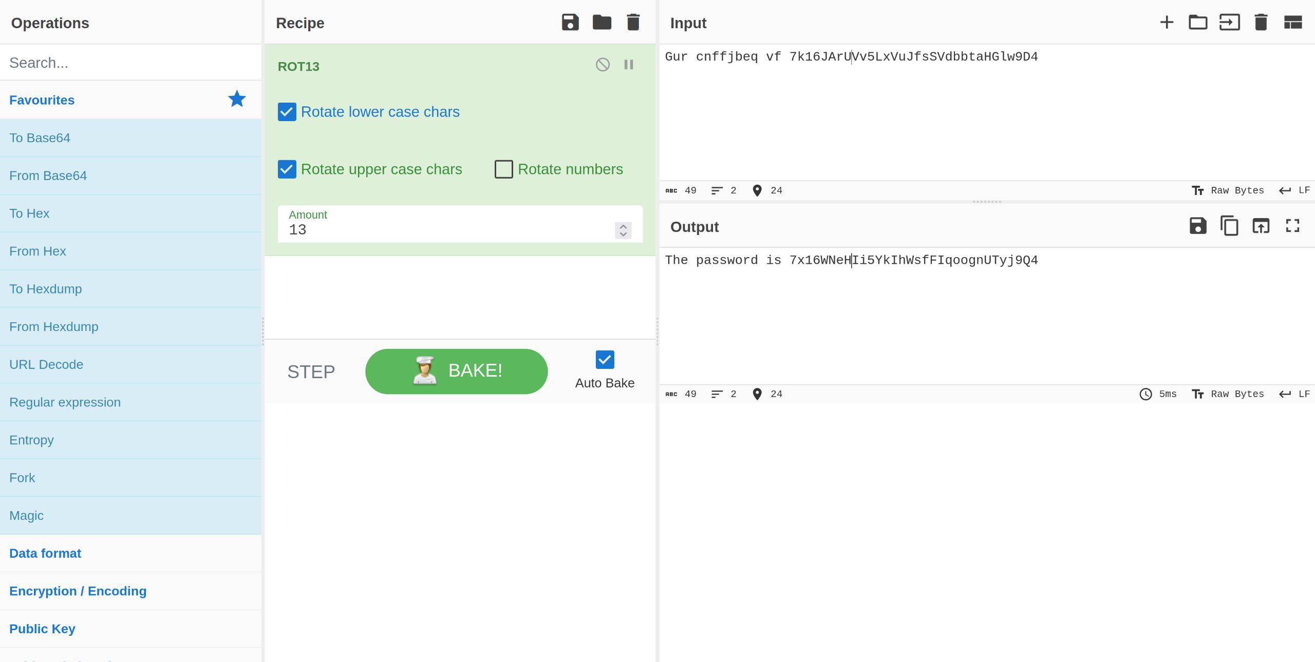 Gur cnffjbeq vf 7k16JArUVv5LxVuJfsSVdbbtaHGlw9D4Since we know that the text is rot 13 encoded. To derot13 decodercode this one we will use one of my favorite tools for working with different types of encryption and decryption called cyberchef. We will use the rot13 decoder.